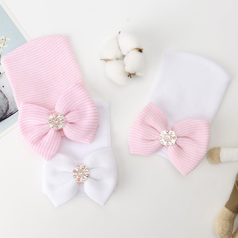 DRESHOW BQUBO Newborn Hospital Hat Infant Baby Hat Cap with Big Bow Soft Cute Knot Nursery Beanie