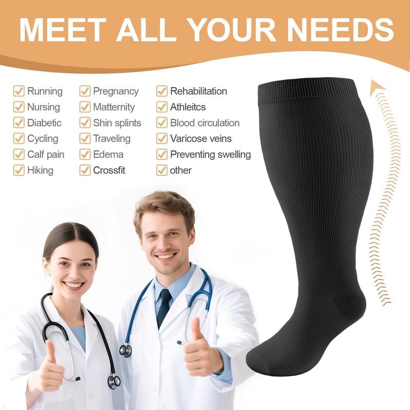 3 pairs of plus size compression socks