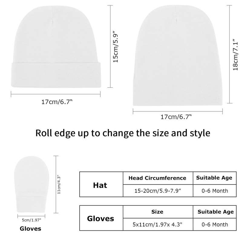 - Newborn beanie hat and gloves, quality imported fabric! it is durable, light, soft, breathable, skin-friendly, and has good elasticity. Perfect for newborns.