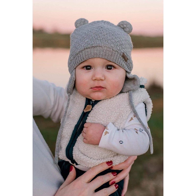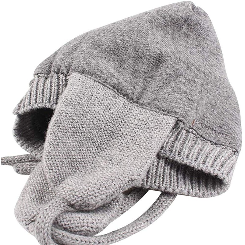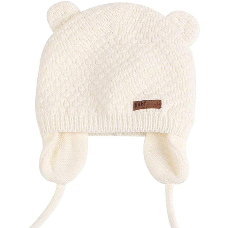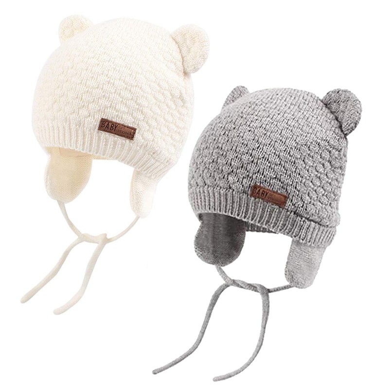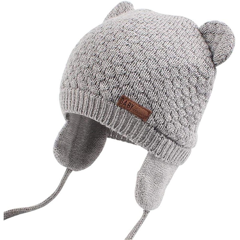 DRESHOW Unisex Baby Beanie Cap, Cute Bear Beanie with Earflaps for Toddlers, Warm for Autumn and Winter, Grey & White