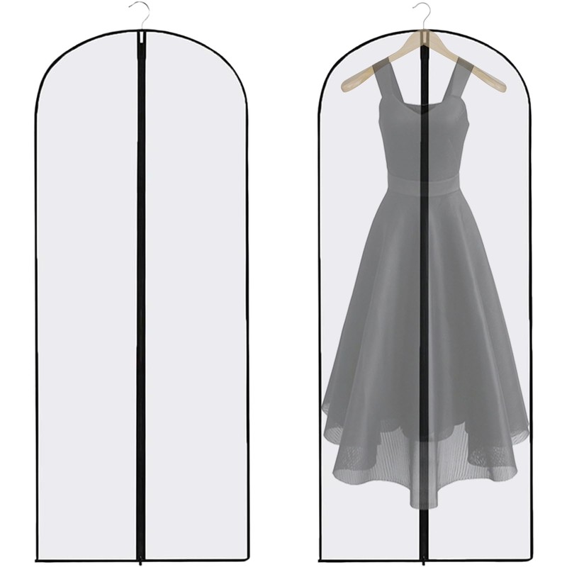 - Package Contents: This dress covers garment bags full length set includes 2 pcs 60 x 140CM black edged garment bags, which can protect clothes from dust, dirt and pet hair, great for storage or travel;garment covers can save you a lot of money and space as daily household items.