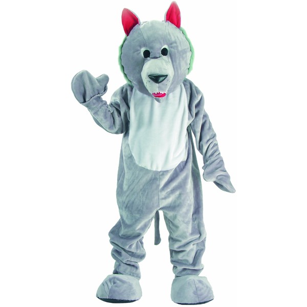 - THE BIG BAD WOLF - This mascot costume is an excellent way to bring the classic fairy tale of Little Red Riding Hood to life! With the jumpsuit with the attached mitts, the mascot head mask and the feet, this is definitely a great buy! The wolf mascot is available in sizes for teens and adults.