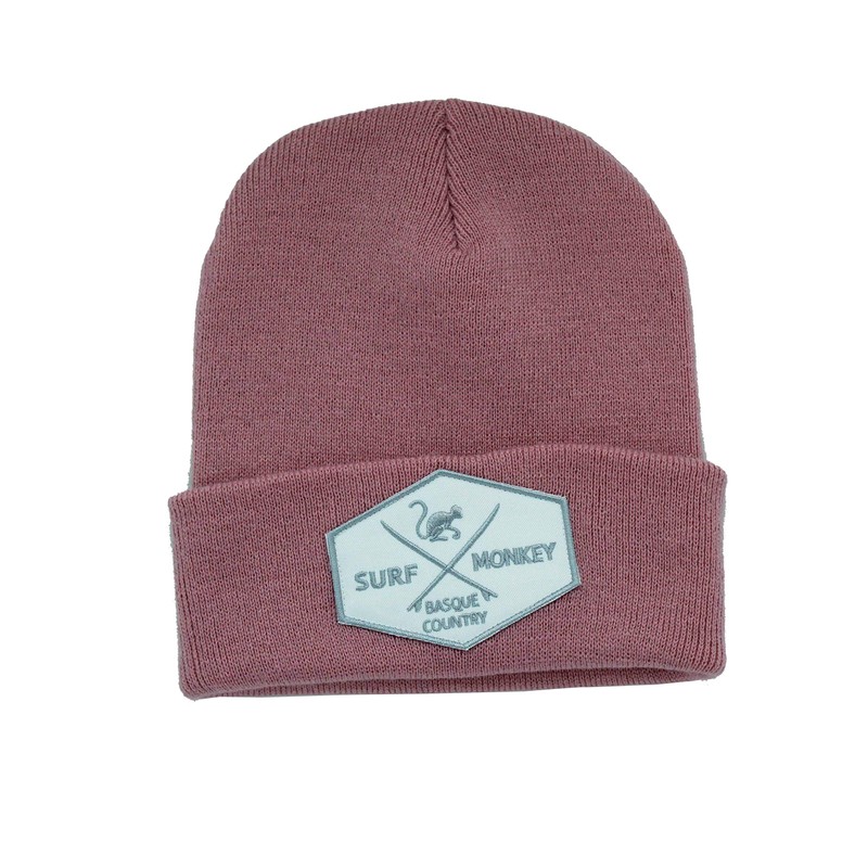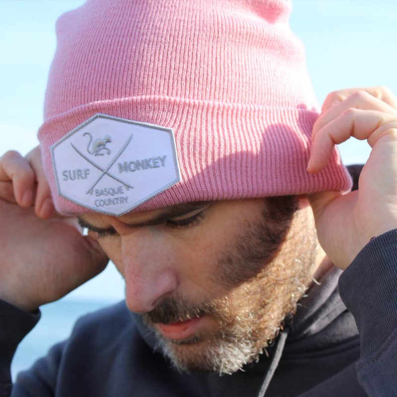DRESSED IN MUSIC PLAY WITH ME Beanie with Brim for Men - Winter Hat - Original Cuffed Beanie - 100% Soft Acrylic - Patch on Envelope Surfing The Basque Country, Pink Pinky