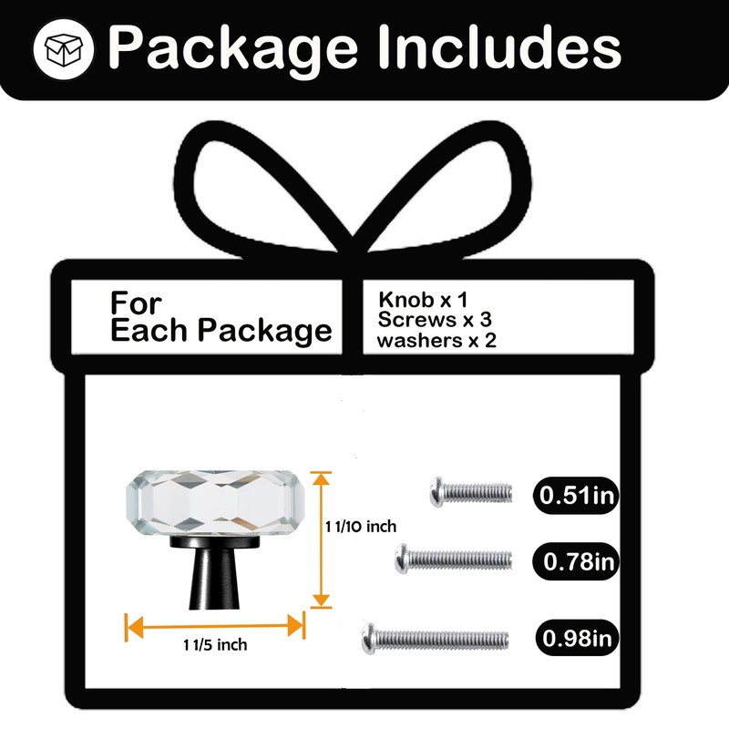 - 【Packing List】 The 4-Pack of items includes 4 * Black cabinet knobs ,12 * screws of various lengths and washers. Each drawer knob is individually packaged to effectively protect the product itself