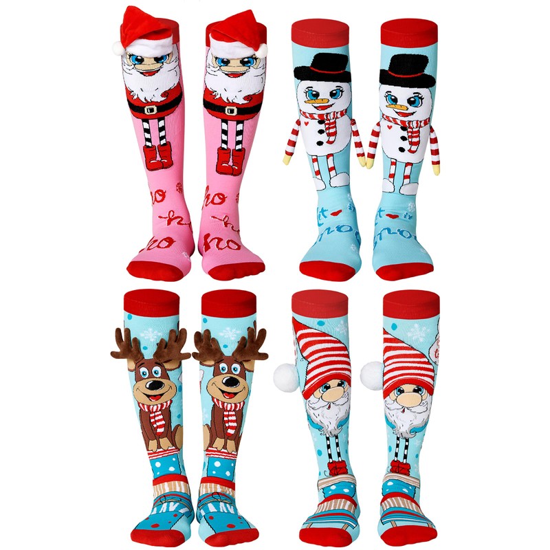 dressfan 2 Pairs Unisex Christmas Socks, Novelty Funny Christmas Socks, Winter Socks, Warm Cosy Socks Set for Christmas Gift, BHXR+TWLT+RHLT+LU