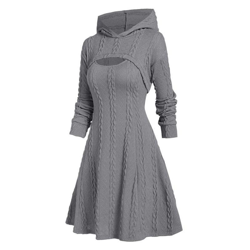 - 【STYLE】You can wear this dress set separately. The top is our classic hooded cable knit arm warmer sweater,the dress is a soft mini dress.