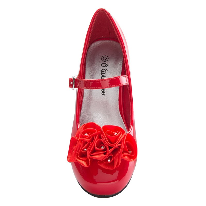 DressForLess Mary Jane Shoes with Pretty Satin Rolled Rosettes Patent Leather, RED 11