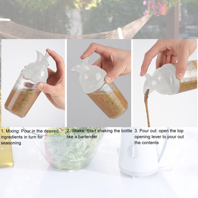 - High Quality Material This salad dressing bottle is made of high quality ABS+PP material with excellent impact resistance and durability, which makes the bottle withstand accidental drops in daily use. This salad dressing bottle is safe for contact with food, healthy, safe and environmentally friendly.