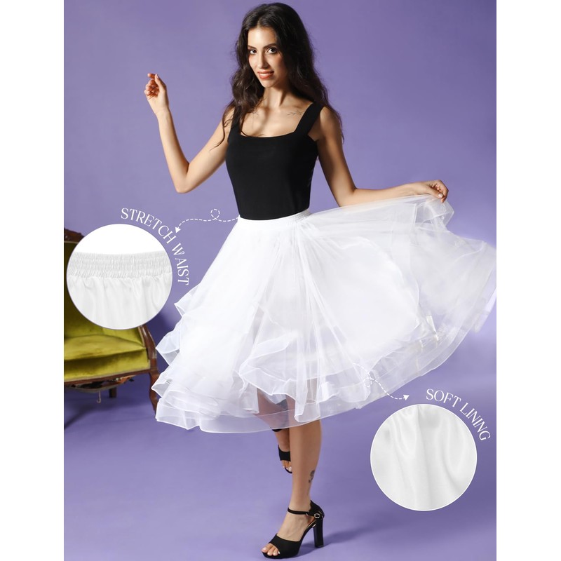 - Elastic closure: Puffy knee length skirts for teen are designed with elastic high waist, making it very comfortable to wear. Simply match the women's tulle skirt with any of your tops, jewellery and sneakers to create different styles, such as: vintage, simple, cute, elegant and fashion. A perfect addition to your wardrobe
