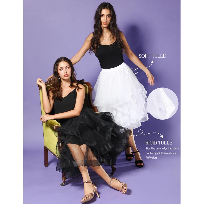 - Fluffy and Puaffy: Tulle skirts for women has 2 layers of premium tulle and 1 layer of lining, which is light and soft, skin-friendly and breathable. The tiered layered asymmetric design of the tulle midi skirt gives the skirt just the right amount of fluffiness, simple and feminine, wear it like a lovely princess