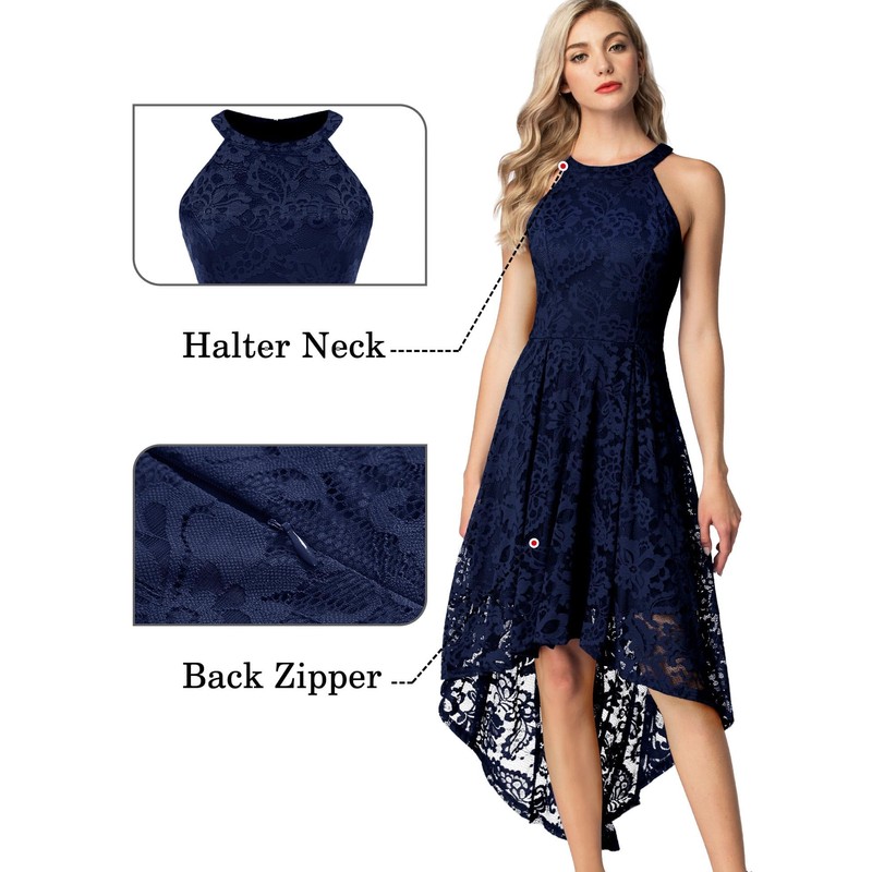 Dressystar Women Halter Lace Wedding Guest Dress Hi-Lo Cocktail Party Bridesmaid Formal Dresses Navy L