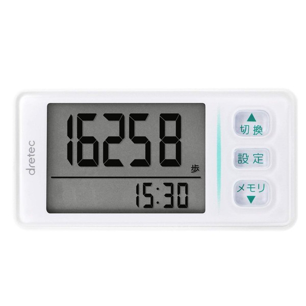dretec H-236WT Pedometer, Large Screen, Calories Burned, Exercise Display, 3D Sensor, 30 Day Memory, Clip Strap Included, White