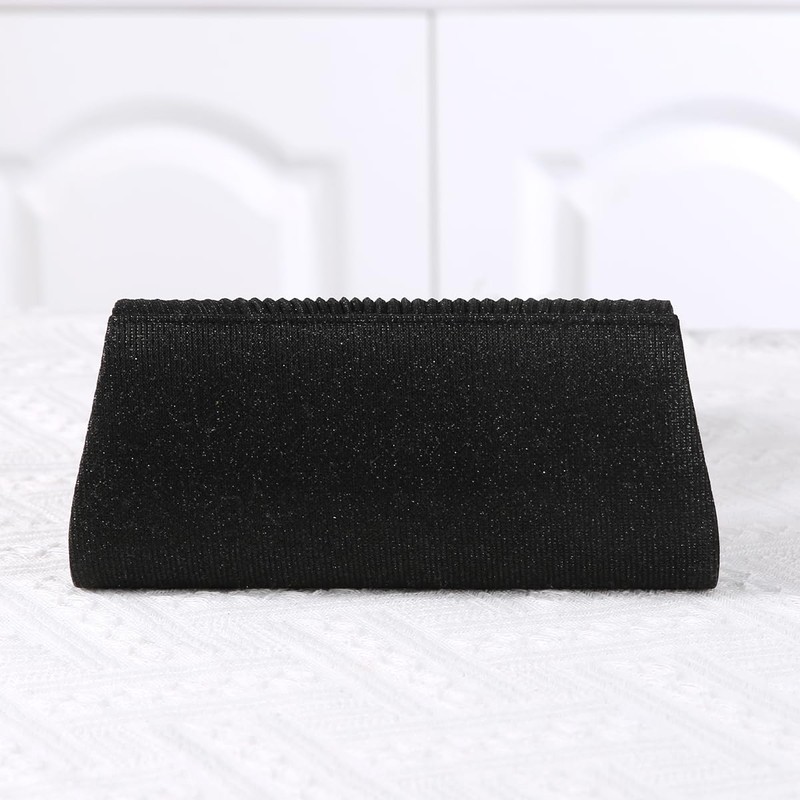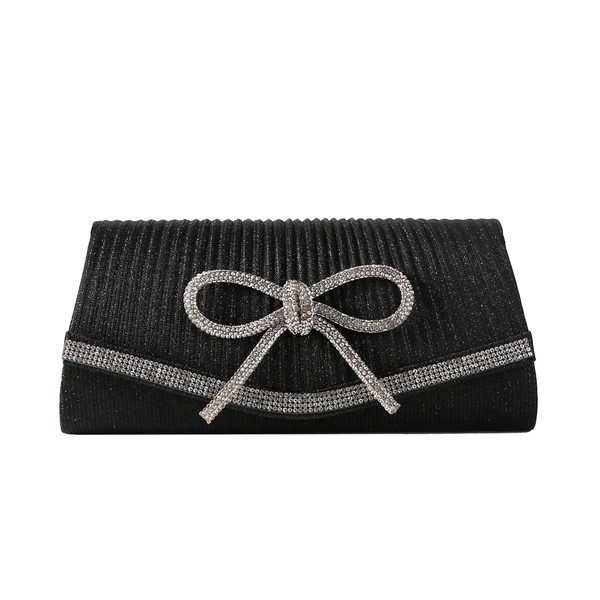 Dreubea Women's Fashion Bowknot Rhinestone Evening Handbag Ladies' Shiny Clutch Bag, Black