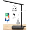 Drevet LED Desk Lamp, Desk Light with 1 USB Charging Port and 2 Way Outlets, 3 Lighting Modes, 3 Level Brightness,1H Timer, Touch Control, Eye-Caring Home Office Bedside Table Lamp (Black)