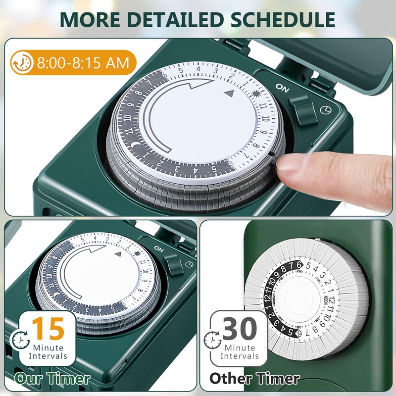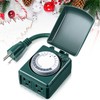 - Multifunction Holiday Light Timer: with green color design, this outdoor outlet power timer will blend into your Christmas yard decorations nicely and is suitable for garden, patio, or outdoor applications