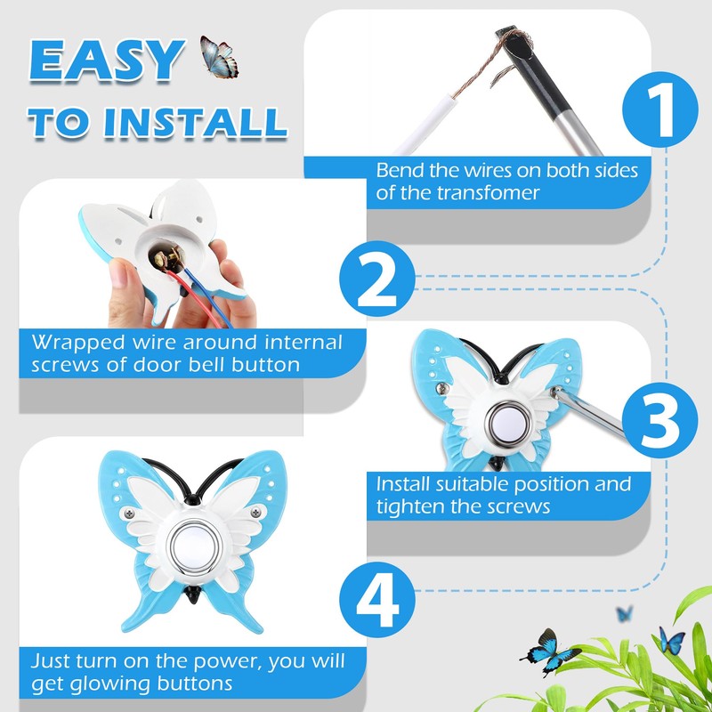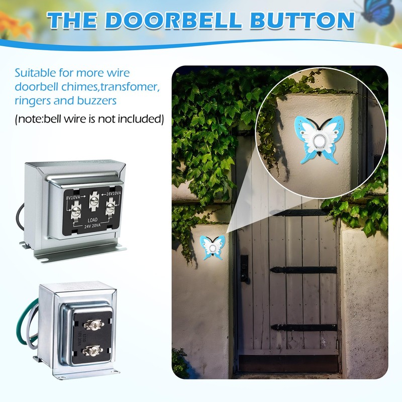 - Unique Butterfly Design: The appearance of this LED doorbell button is designed according to the butterfly, and the unique appearance design is a lively and interesting front door decoration; Suitable for front and back doors, bringing surprises to visiting guests