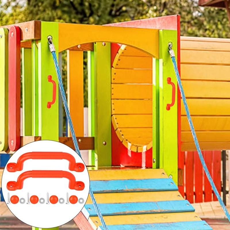 Drfeify Playground Safety Handle, One Pair of Plastic Children's Playground Handles with Accessory Kit (4 Seals, 4 Screws, 4 Nuts) for Children's Outdoor Fitness (Red) Sports Equipment for Children