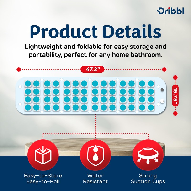 - FULL-BODY RELAXATION WITH REMOTE CONTROL: Measuring 47.2" x 15.75", the Dribbl bath mat offers complete support for your entire body. Adjust bubble intensity and heat settings with the included remote control, creating a warm, spa-quality bath every time.