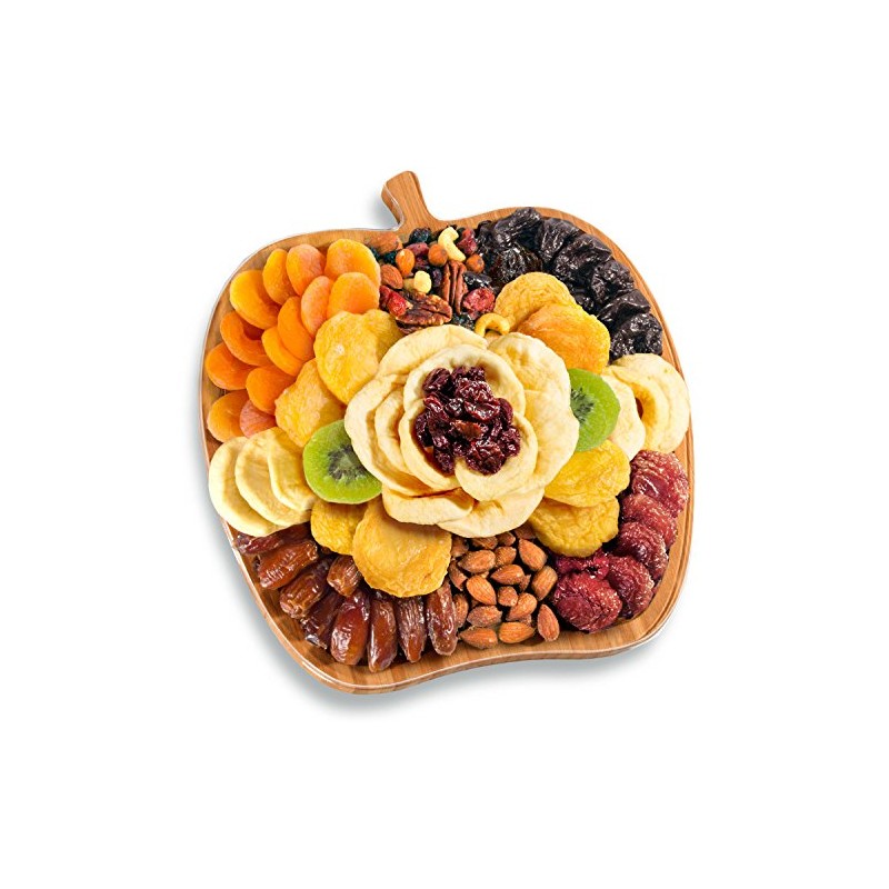 A Gift Inside Dried Fruit & Nuts In Bamboo Apple Shape Serving Tray
