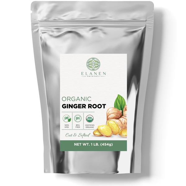 Elanen Naturals Organic Dried Ginger Root 1 lb. (16 oz.), USDA Certified Organic Dry Ginger Root Spice, Cut & Sifted