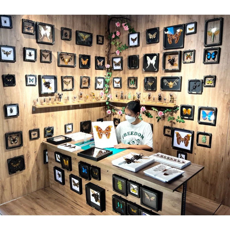 Featured Categories FRAMED MOTHFRAMED BUTTERFLYFRAMED BEETLERAW SPECIMENSDried Insect Taxidermy Real Butterfly Framed Gallery Wall Hanging CollectionPREMIUM QUALITY:This listing for Real Butterfly taxidermy in wooden frame. Frame Sizes: 4.7” x 4.7” x 0.8” (= 12cm x 12cm x 2cm) The frame was made of pine wood covered by 3 layers of paint coming with a special acrylic on front give a clear view , 4 brass baroque corner protectors, a hanger hook on back & ready to hang. In addition, not all specimens always look exactly the same and therefore small deviations of the patterns and colors are possible. All insects are prepared by our own entomologistsPERFECT FOR ROOM DECORATIONLooking to add a touch of natural beauty to your living space? Insect frames are the perfect choice for room decoration. These meticulously crafted frames allow you to bring the enchanting world of insects into your home, creating a captivating focal point. Whether you prefer a modern or traditional style, an insect frame effortlessly complements any decor, infusing your space with a touch of nature's wonder. AN INCREDIBLE GIFT IDEAAre you searching for a unique and extraordinary gift? Imagine the joy on the recipient's face when they receive a striking insect frame. It's a gift that stands out from the ordinary, leaving a lasting impression. Whether it's for a birthday, anniversary, or any special event, an insect frame is a remark IDEAL FOR CHILDREN'S LEARNING AND DISCOVERYInsect frames not only serve as stunning decorations but also offer a wonderful educational tool for children. These frames provide a fascinating opportunity for kids to learn and explore the world of insects up close. Through observation, children can develop an appreciation for the diversity and complexity of these tiny creatures. Especially If you are looking for a custom/customized or personalization frame please contact us with detail, and we will make as your requirements perfectly. With 10 years of experience in the production of insect frames, we are confident to bring you the best product quality. About Us: Welcome to DANACREATIONS! We are a supplier from Vietnam with 10-year experience in this field. We sell handmade, incredibly delicate products like wooden framed butterflies and insects.Decorating your house and giving it to family and friends as a gift is a wonderful idea. We also have warehouses in the US with the experience of exporting to many areas worldwide, introducing Vietnamese brands to a wide audience. We take pride in providing you with excellent items and the greatest ordering experience.We could make the custom products so please feel free to contact us for more detail. Thanks for visiting! Terms & Conditions: Guarantee positive feedback from us to you! We promise to give you a positive feedback after your order is shipped out. Shipping Policy: We will ship out every order within 2 business days after the clear payment is received with the tracking number. Return Policy: Return/ resend can only be accepted within 30 days of receipt. Return/ resend will be accepted when the frames are damaged in the delivery process or the quality of the products is not guaranteed before reaching customers. The return shipping fee will be charged to customers. Contact Us: We will always provide the best service and reliable products for every customer. However, things may happen sometimes. Please contact us to resolve any issue before leaving a feedback. If you have any questions, please feel free to Contact Us |