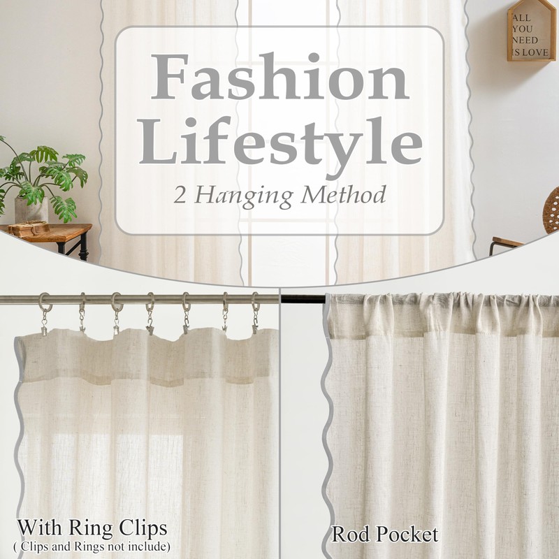 - Multiple hanging options: The curtain rod pocket style has a soft and traditional look, and the curtain rod can be passed directly through the channel. Metal or plastic clips can be directly attached to the top of the curtain panel. (Rings and clips are not included).
