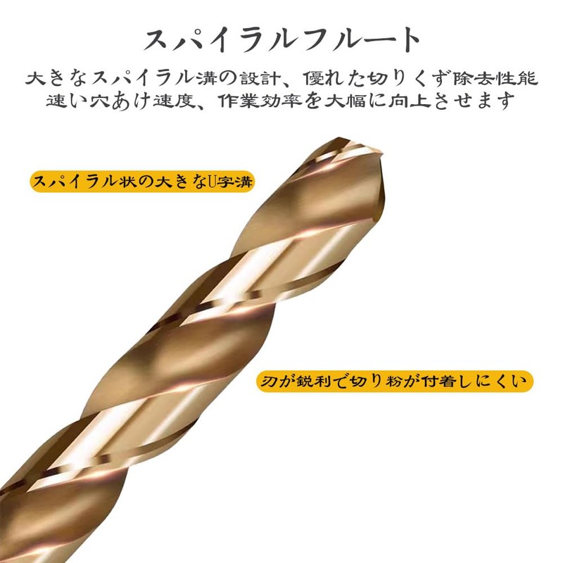 Drilling: The groove shape is ideal for stainless steel and has less welding and smooth drilling. Material for machining: stainless steel, hard work material, general steel, light metal (iron, aluminum, copper), wood, resin, etc. An indispensable tool for household DIY, drilling holes etc.
