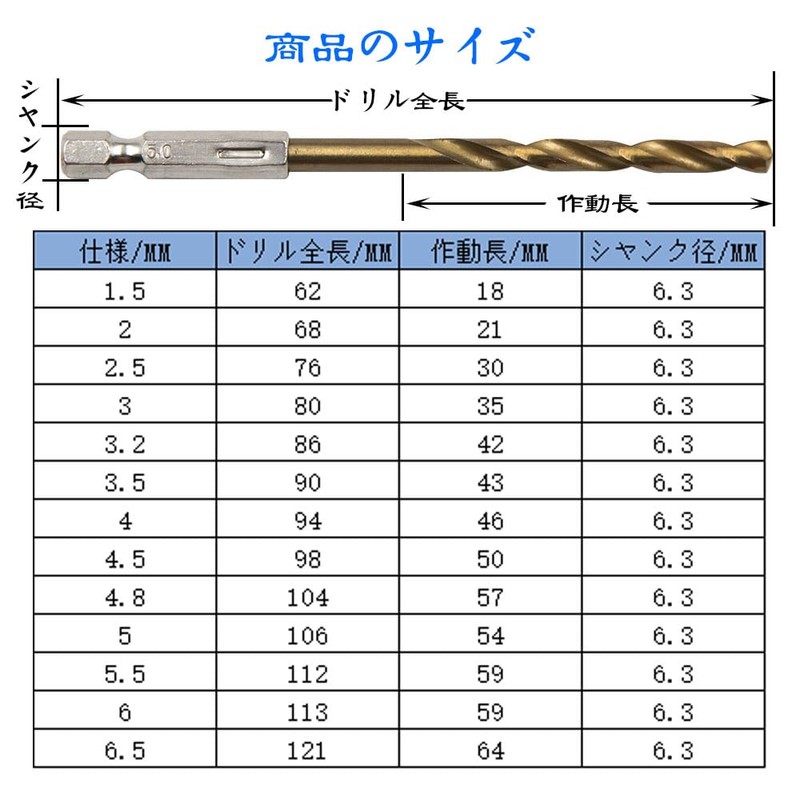 [Product Specifications] Set Contents: 13 pcs rilbit set. Size:1.5mm-6.5 Shaft Diameter: 6.3mm Hex Shaft