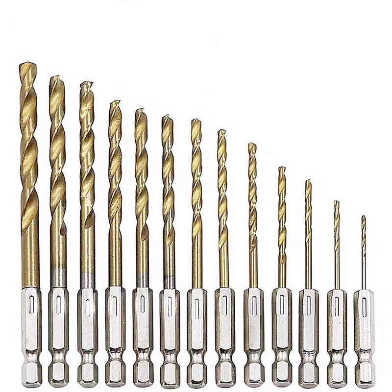 Drill Bit, Drill Blade, Drill Set, Drill Bit Set, Set of 13, DIY Hexagonal Shaft, Impact Driver, Drill Driver, Electric Drill, For Ironworking, Woodworking, Steel Use, Versatile, 0.06 - 0.26 inches (1.5 - 6.5 mm)