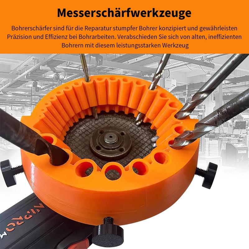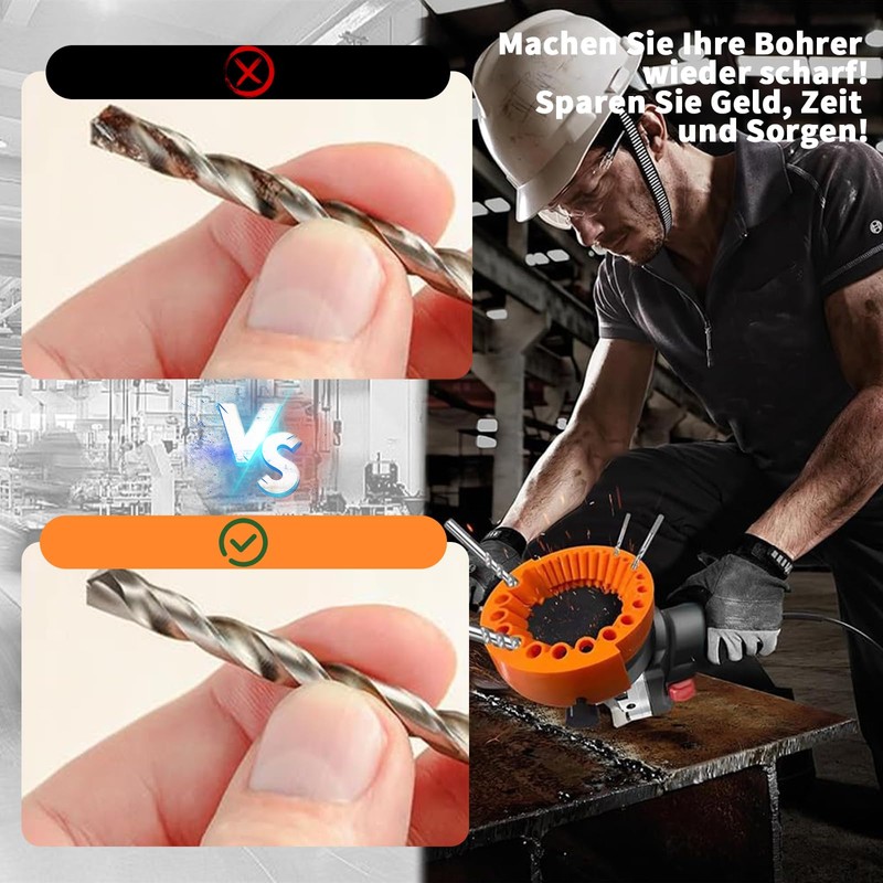 - 【Multifunktionaler Helfer für Profis und Hobbyisten】 Nicht nur Bohrerspitzen: Mit dem Schleifaufsatz lassen sich stumpfe Messerklingen, Meißel und Kleinstwerkzeuge präzise bearbeiten. Die TÜV-geprüfte Sicherheitsabdeckung minimiert Funkenflug für entspanntes Arbeiten.