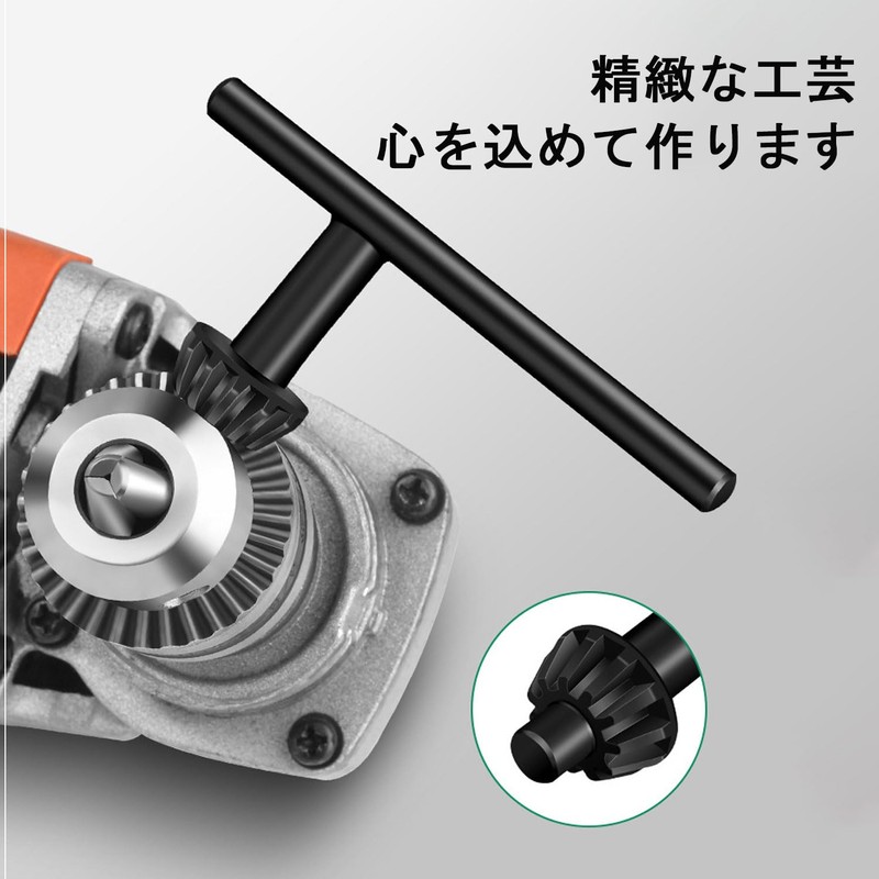 - [Product] Set of 3 chuck handle, drill chuck key, impact chuck key. Handle Shape: T-shape, Key Color: Black Drill Chuck Key Size: 3 types 10mm + 13mm + 16mm