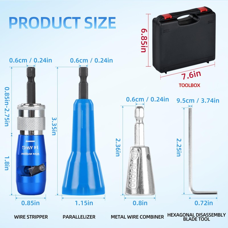- 2. The tool fits into most standard-sized drills, extending its range of applications. The Wire Stripping Tool for Drill delivers a high level of precision and quality in stripping wires without causing any damage.