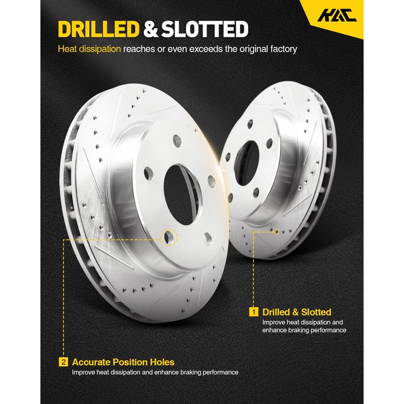 - Performance Improvement: The brake discs rotors use drilling and slotting technology, which can not only enhance the dust exhaust function, but also improve the heat dissipation performance and keep stable in braking