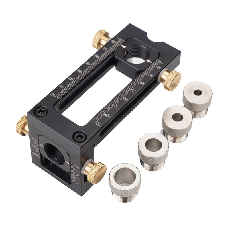 1. 2 in 1 set with adjustable dowel drill guide for woodworking for drilling dowel holes and vertical holes.