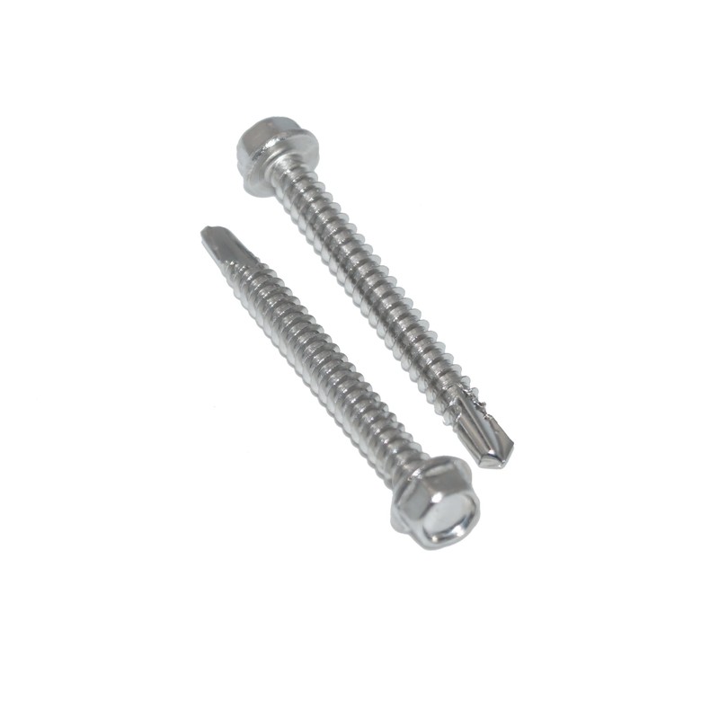 Drilling screws with hexagonal head and collar, shape K made of A2 stainless steel according to DIN 7504.