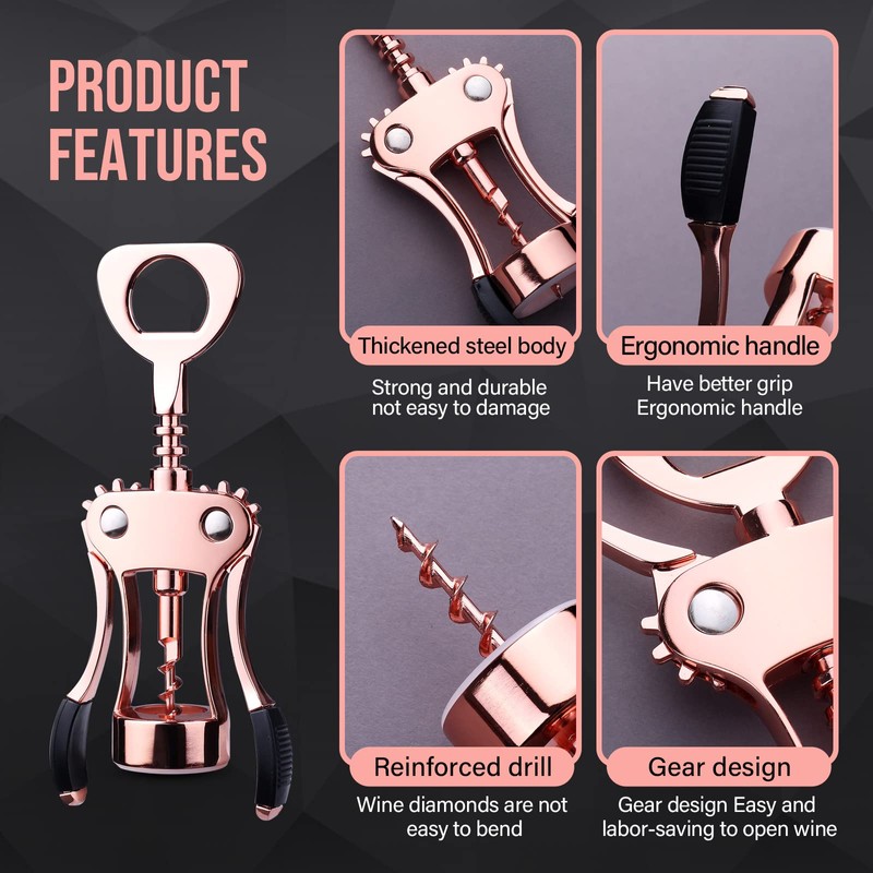 - Quick Pop - Just pull down the wings and your cork will come out! Sturdy wings with rubber provide ease and comfort for each grip. And the stable rivets ensure the cork is extracted out of the center.