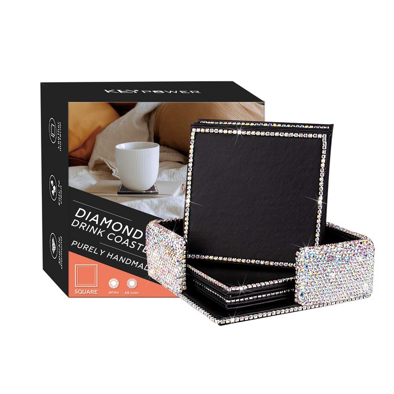 Drink Coasters Coffee Tea Cup Pads Table Mat for Home/Office/Kitchen/Bar, Protect Your Furniture from Scratch/Stains Bling Crystal Luxury Handmade Diamond Purely Handmade (Square) (AB Color)