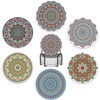 Drink Coasters Set of 6 with Holder,Mandala Boho Flower Absorbent Ceramic Coasters with Cork Base,Fit All Cups,Tabletop Protection Mat for Mugs and Cups,Office,Kitchen