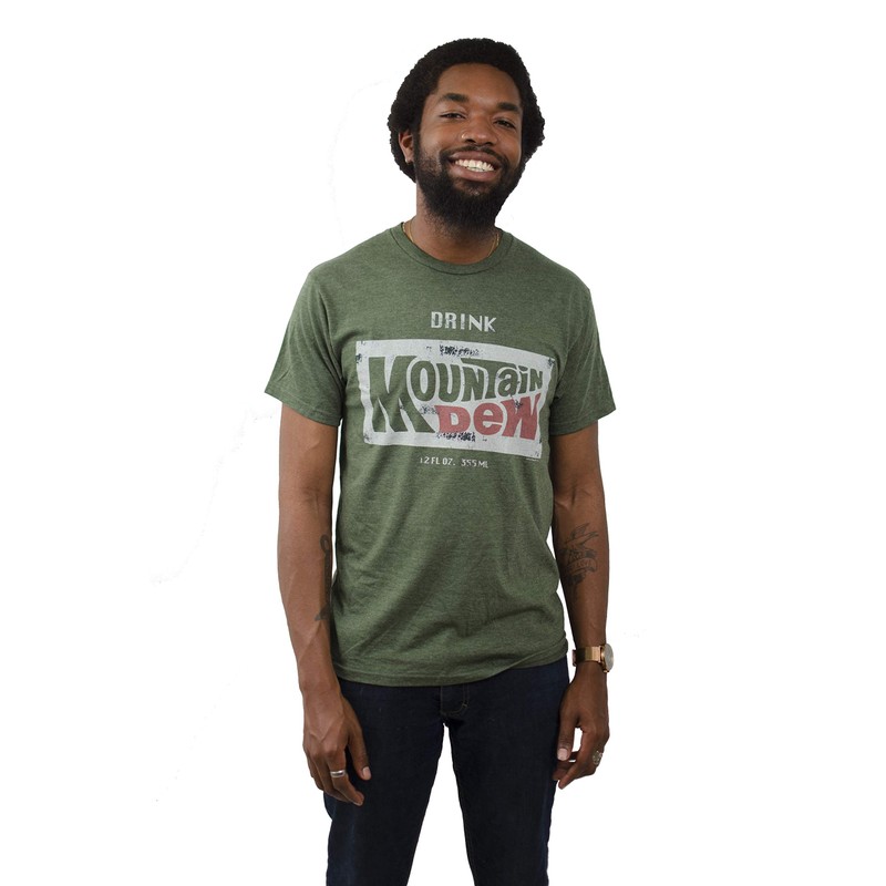- Your New Favorite Mountain Dew Shirt: Enjoy the nostalgia of the classic 70s Mountain Dew wave logo - distressed and printed on the softest Forest Green Heather tee we could find.