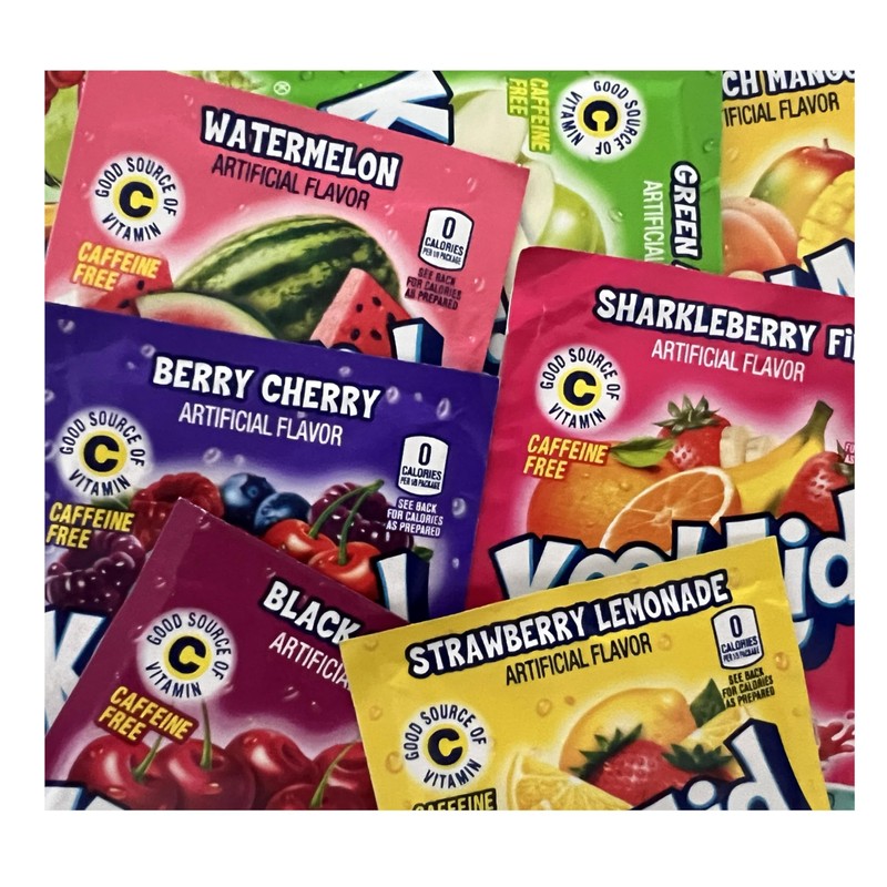 Flavours include: 1 x Strawberry Lemonade (5.3g), 1 x Black Cherry (3.6g), 1 x Berry Cherry (4.8g), 1 x Sharkleberry Fin (4.6g), 1 x Watermelon (4.3g), 1 x Green Apple (6.3g) & 1 x Peach Mango (4g) Discover a delightful assortment of drink sachets in this USA Variety Pack bundle. Perfect for those who love to experiment with different flavours or want to keep a diverse selection of beverages on hand. These convenient sachets are ideal for your home, office, or whilst travelling. Simply add water to create your preferred drink in seconds. The compact sachets take minimal storage space whilst offering maximum variety. Each sachet is individually sealed to maintain freshness and flavour. This selection pack lets you sample various options before committing to your favourites. Keep them in your desk drawer, kitchen cupboard, or travel bag for a quick and tasty drink whenever you fancy. An excellent choice for households with varying taste preferences or for those who enjoy mixing up their beverage routine. Stock up on this practical bundle to ensure you're never short of refreshing drink options.