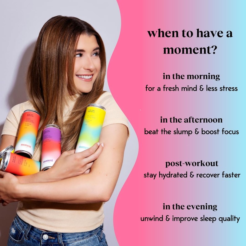 - DITCH THE SUGAR & ENJOY GOOD-FOR-YOU INGREDIENTS: Moment adaptogen drink has zero added sugar, zero caffeine, zero alcohol, and only between 15 and 20 calories per can. It's made with real fruits and immunity-boosting botanicals like antioxidant-packed hibiscus and fresh summer mint to support gut health and improve overall wellness.