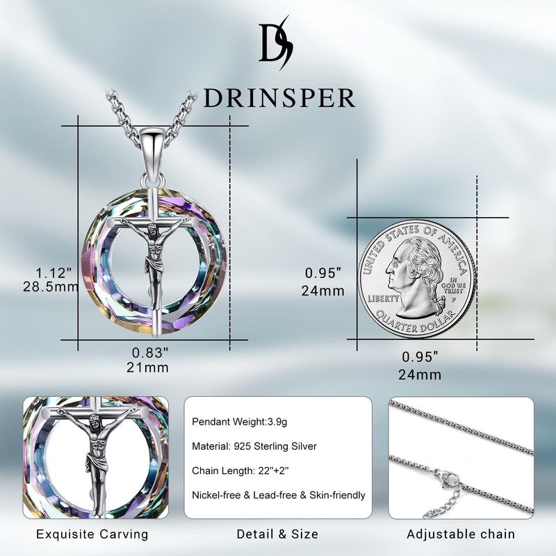 - Crucifix necklace:This exquisite crystal pendant features sterling silver crucifix center add a touch of sacred elegance, This design serves as a reminder of Jesus' love and serves as a powerful symbol for those who believe in Christianity.