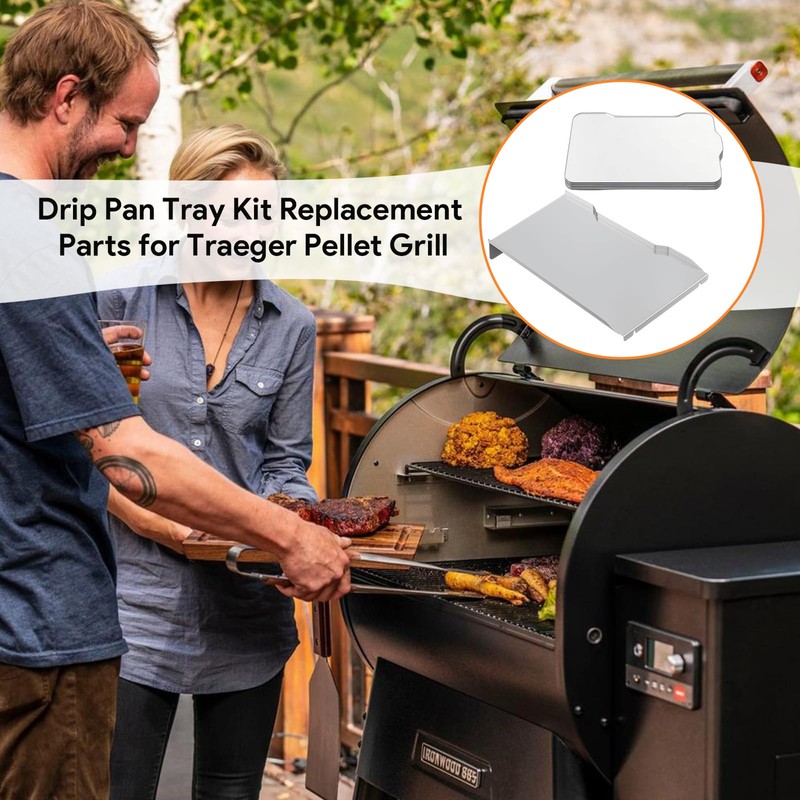 - ❀Made from rugged stainless steel for superior thickness and durability, this drip pan kit ensures quick and effortless setup, perfectly compatible with Traeger grill parts, for the Traeger Ironwood 885 series pellet grills drip pan and drip pan liners kit