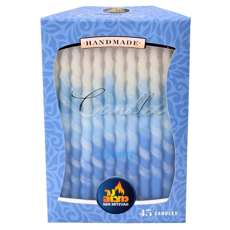 Dripless Chanukah Candles Standard Size - Spiral Ombre Blue & White Hanukkah Candles Fits Most Menorahs - Premium Quality Wax - 45 Count for All 8 Nights of Hanukkah - by Ner Mitzvah