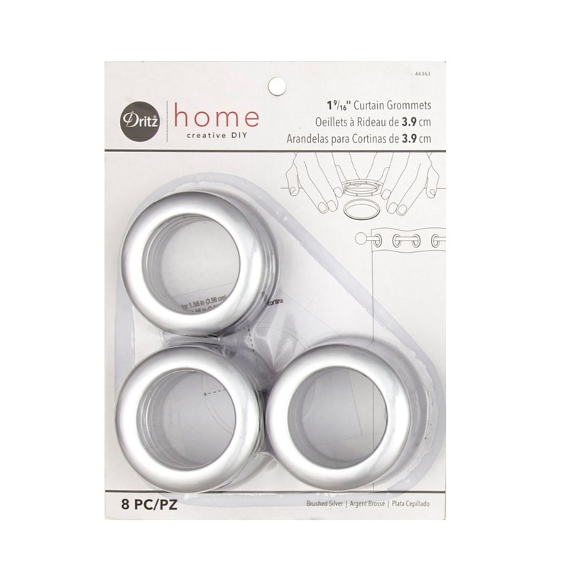 Dritz 1-9/16-Inch Inner Diameter Curtain Grommets, 8-Pack, Brushed Silver