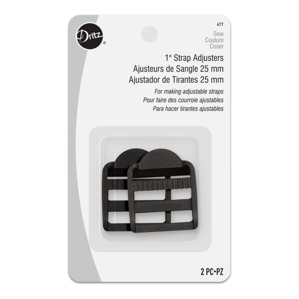 Use Dritz Strap Adjusters to make handles or straps adjustable in length for a more perfect fit. The double loop is suitable to use with fabric, elastic or webbing. Ideal for straps on suspenders, pet collars, bags, and purses. Also great for luggage, sporting equipment and tote bags. This package contains 2 black strap adjusters for 1" straps.