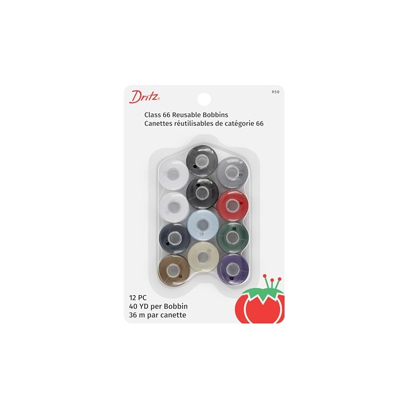 Dritz 950 Bobbins, Class 66, Plastic Pre-Filled, Basic Colors (12-Count) , White