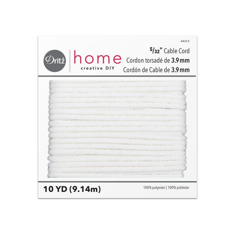 The Dritz Home 5/32" Cable Cord is an essential item to have in your home sewing tool kit. Made of 100% polyester, it can be used for indoor and outdoor décor, sportswear and crafts. Cord is machine washable and dry cleanable.