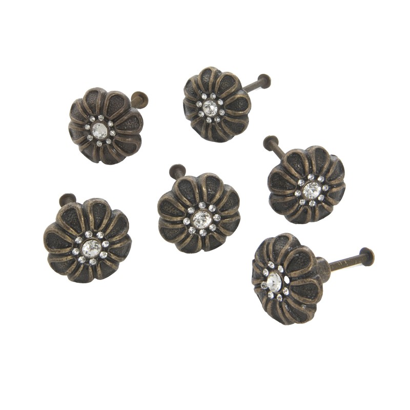 Dritz Home 47064A Cast Iron Rhinestone Flower Knob, Bronze (6-Piece)