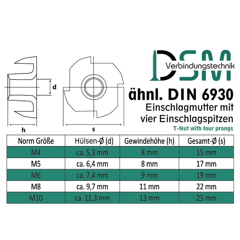 - Drive-in nut similar to the standard DIN 6930 / ISO 6930g